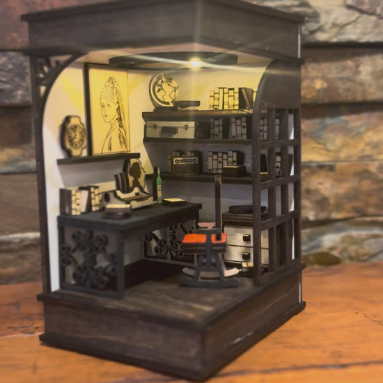 The Unique 3D Book Nook is a carefully crafted and rare piece made out of wood, featuring an antique style and a stunning 3D effect. Perfect for book lovers looking to add a unique touch to their home decor.